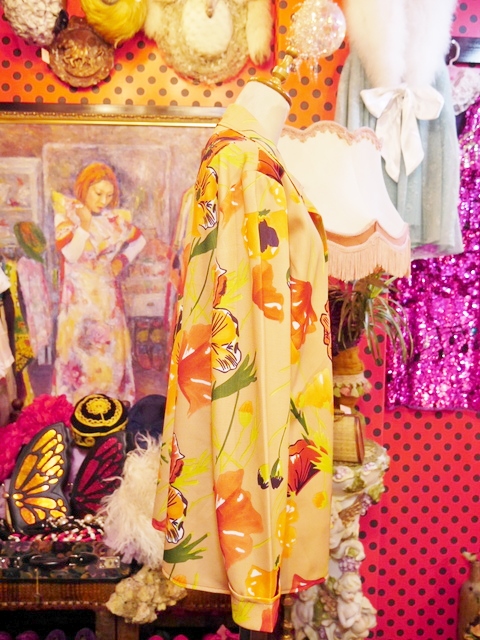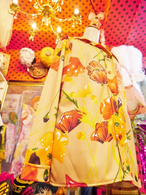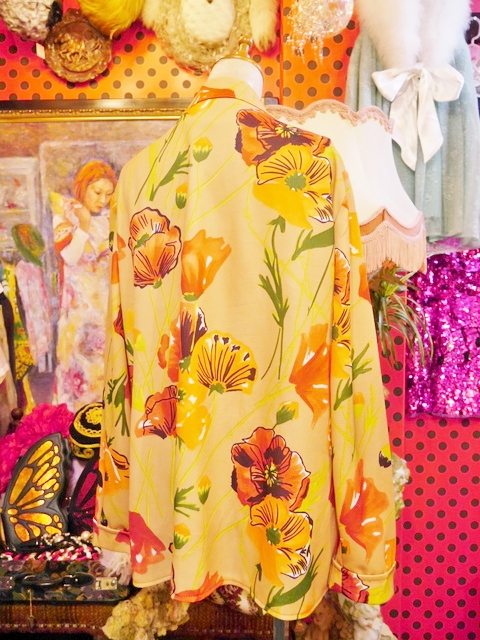 ヨーロッパ古着70sレトロモダンカラフル花柄ブラウス