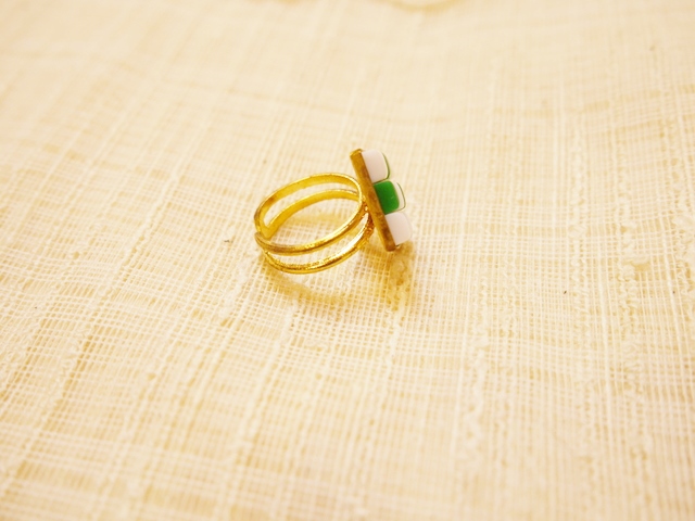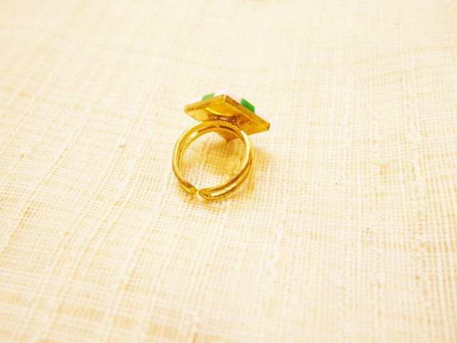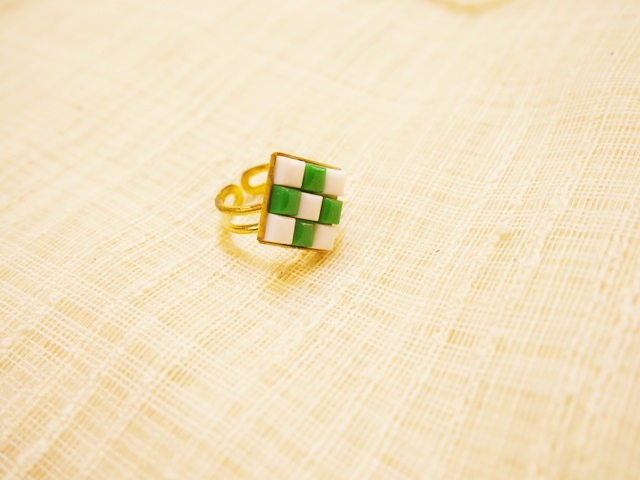 タイル風なフランスヴィンテージパーツでデザインされた1960~70年代頃のヨーロピアンヴィンテージリング スタイリングを何倍にも輝かせてくれるカラフルでレトロポップなアクセサリー