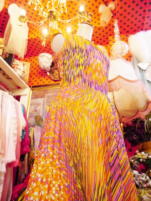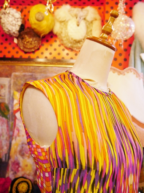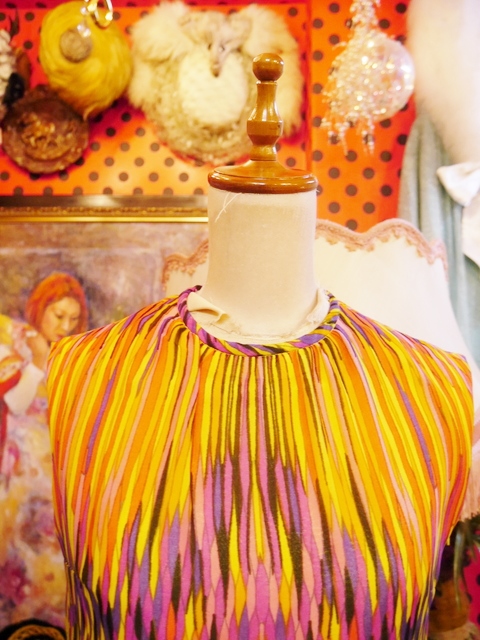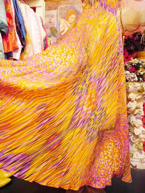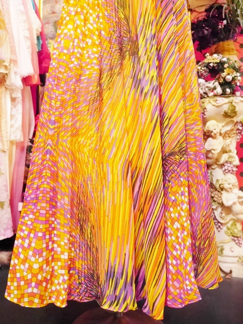 ヨーロッパ古着70sカラフルサイケデリックロングドレス