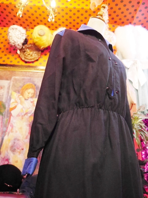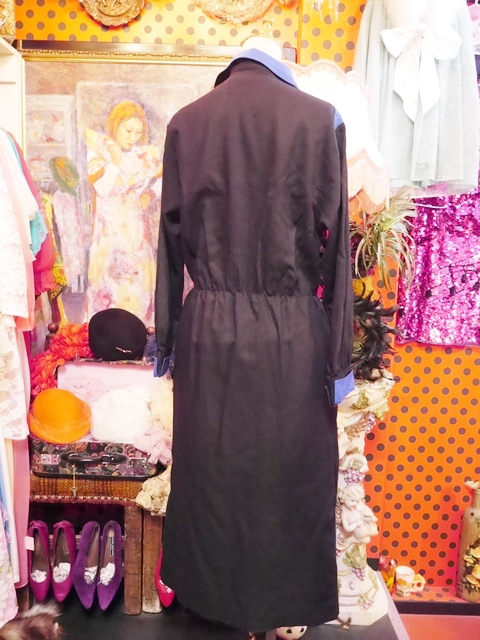 ヨーロッパ古着70s黒マニッシュモードワンピース