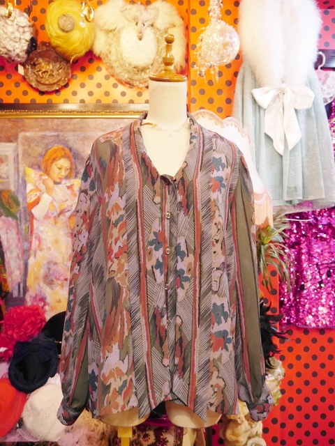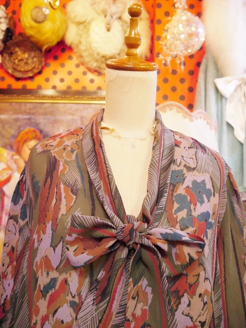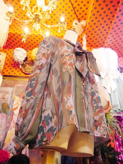 ヨーロッパ古着フランス製エレガント花柄リボンブラウス