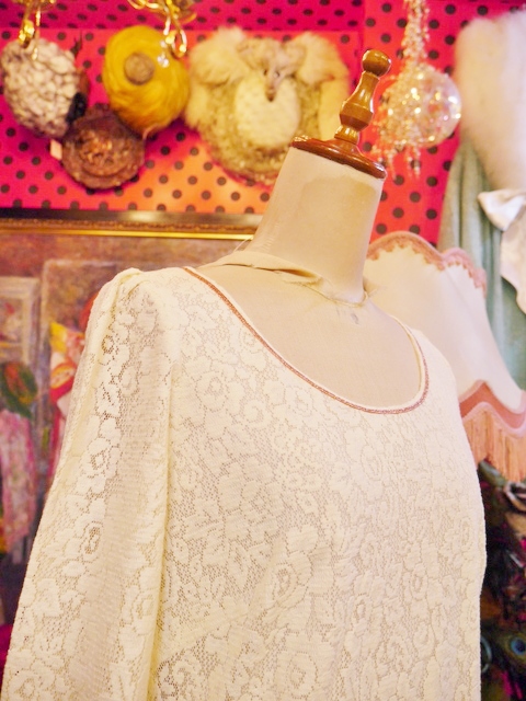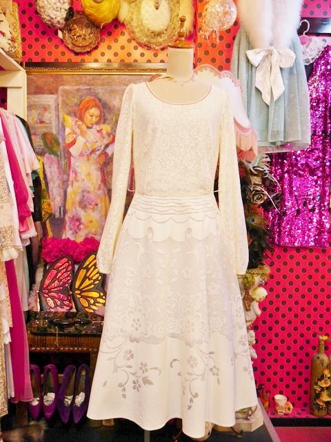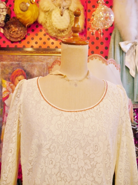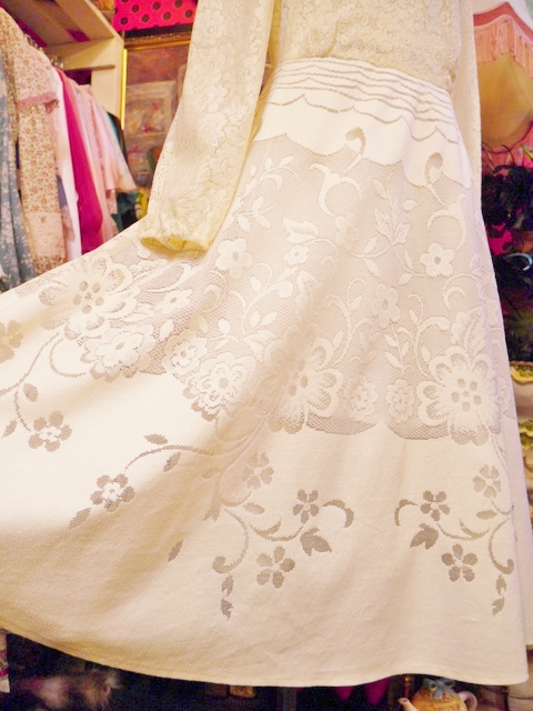 ヨーロッパ古着70sロマンティック花柄レースドレス