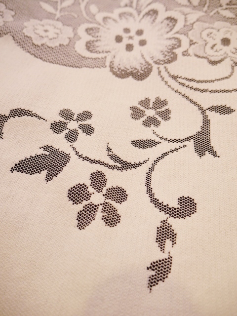 アンティーク感漂うきなりベースに繊細かつ華やかな総花柄レーストップス×エレガンスな透け感の花柄フレアスカートが魅力的な1970年代頃のヨーロピアンヴィンテージワンピース アクセントのポイントにウエストマークもおススメ!