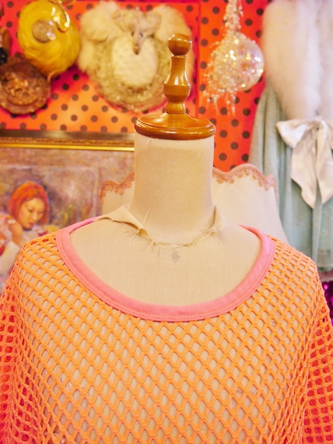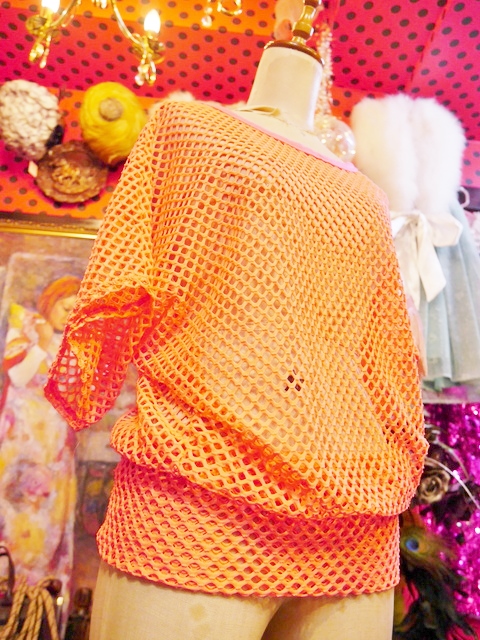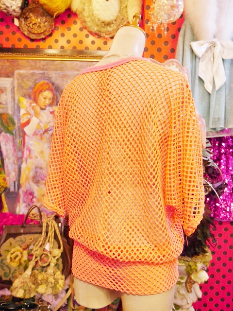 ヨーロッパ古着ビビッド蛍光ピンクメッシュカットソー