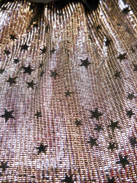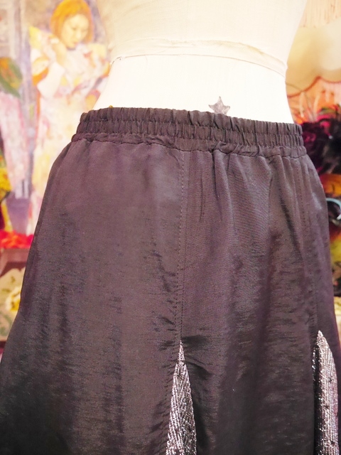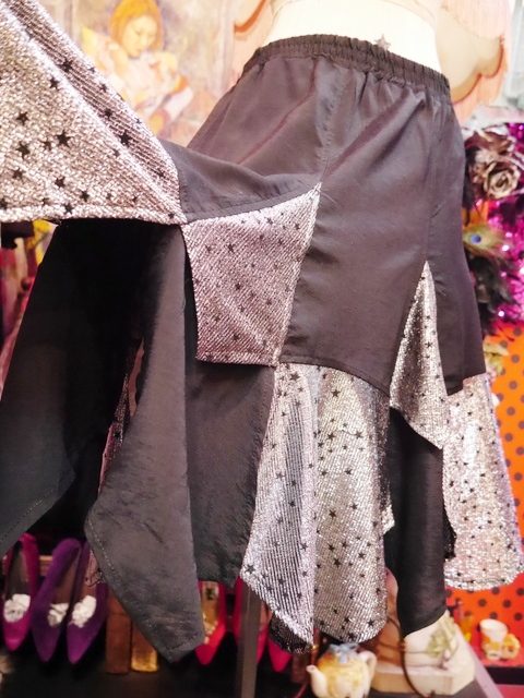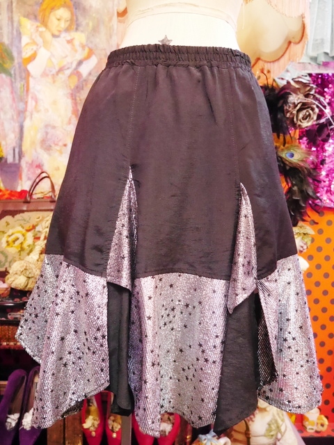 ファンキーなメタリックシルバーに星が散りばめられユラユラ揺れる裾のカットデザインがお洒落で個性的な1970年代頃のヨーロピアンパーティースカート