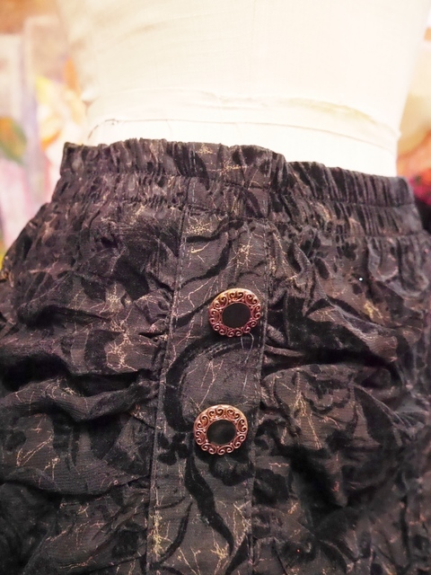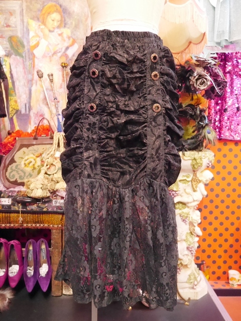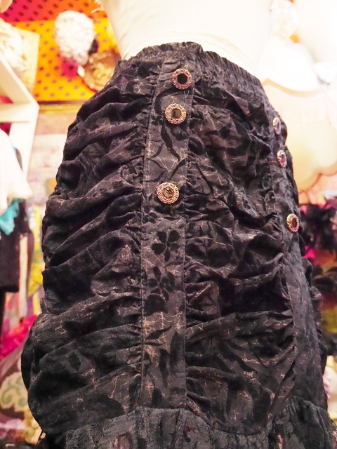 透け感がある生地に立体感がある花柄フロッキー加工×ドレープ感がある個性的なギャザーデザイン、軽やかでセクシーな透け感が魅力の花柄ヴィンテージレースなどディテールに凝ったフランス製ヴィンテージパーティースカート
