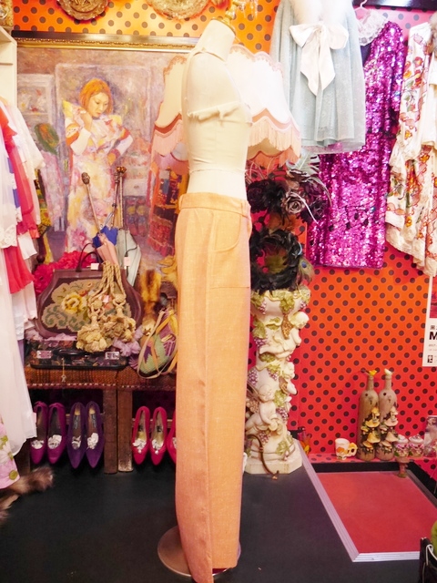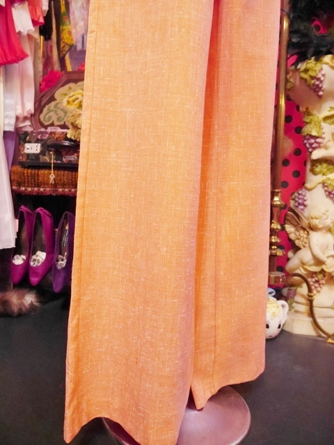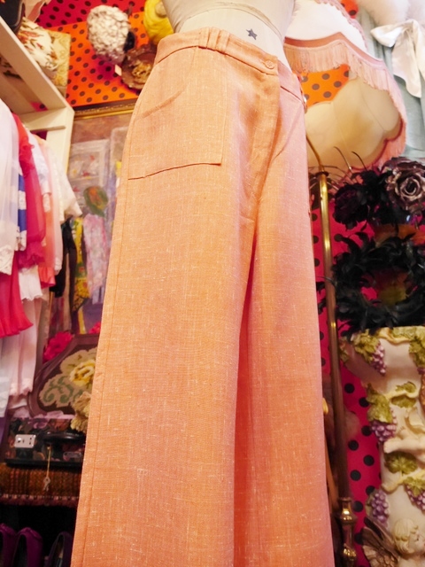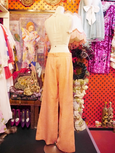 膝から下に広がりがあるパンタロンデザインがレトロ感たっぷりの1970年代ヴィンテージパンツ 3本の細いベルトループ付きなのでキュッと絞ってもお洒落なパンツ