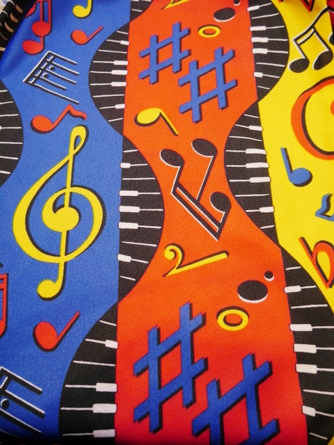 インパクトたっぷりの個性派アイテム!大きなレトロポップボタンにカラフルな音符プリントがカッコ可愛いパリで見つけたヨーロピアンホルターネックジャンプスーツ バックスタイルの大きなリボンがお洒落ポイント!