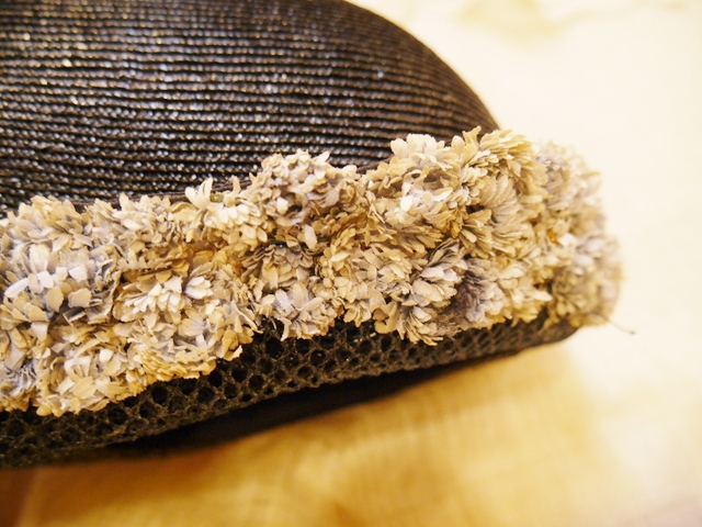 高さと丸みがあるフォルムにアンティーク感漂うエレガンスな小花がデザインされた1940~50年代頃のフランスアンティーク帽子 大人ヴィンテージスタイルにプラスしたいお洒落アイテム!