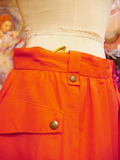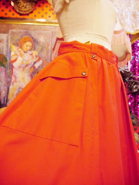目を惹く赤色に大きなレトロポケットデザインが可愛らしい1970~80年代頃の旧西ドイツ製フレアスカート どんなトップスでも受けとめてくれるお洒落スカート!