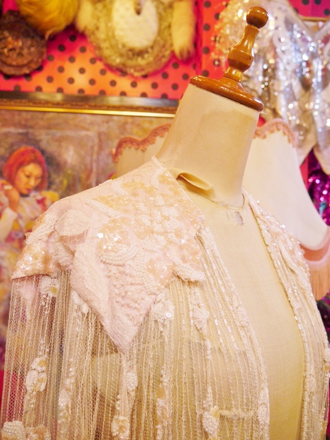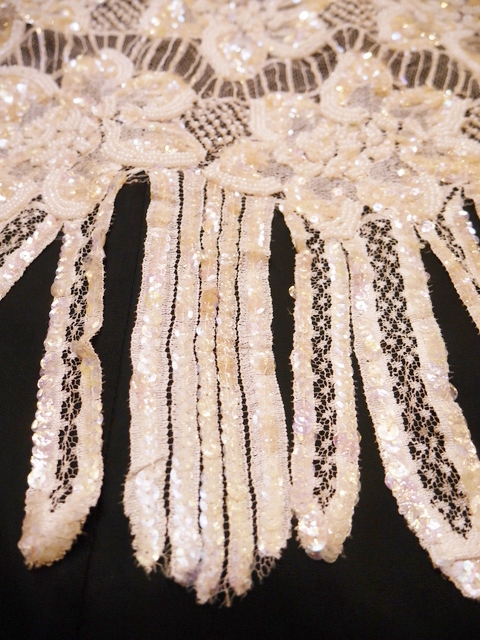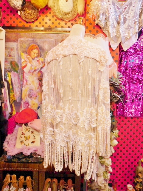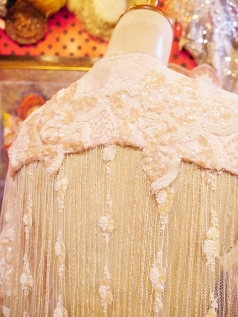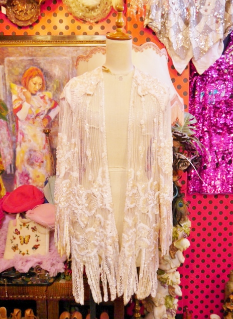 透け感がある繊細な総レースデザインにスパンコールビーズのお花模様やインパクトたっぷりのフリンジデザインがお洒落で個性的なヨーロピアンヴィンテージパーティー羽織 アクセントのポイントにウエストマークもおススメ!