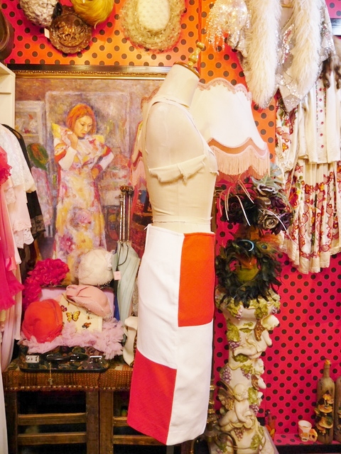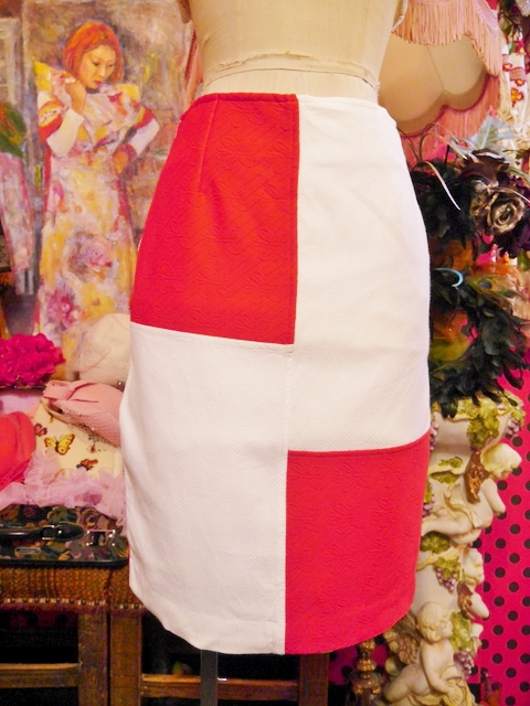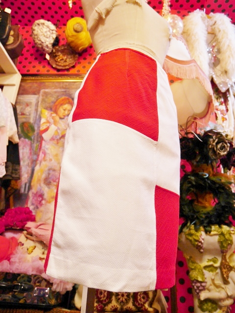 ヨーロッパ古着70s赤白レトロポップタイトスカート