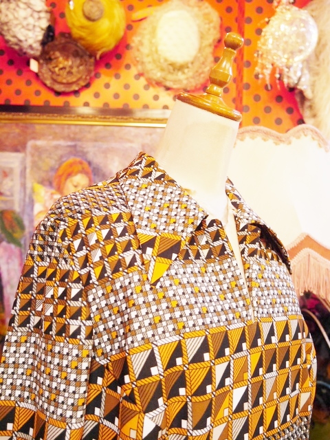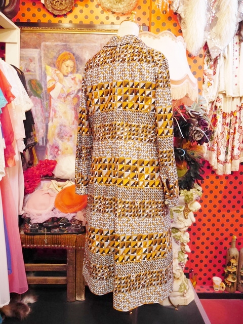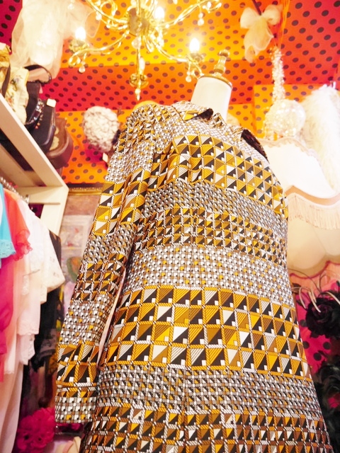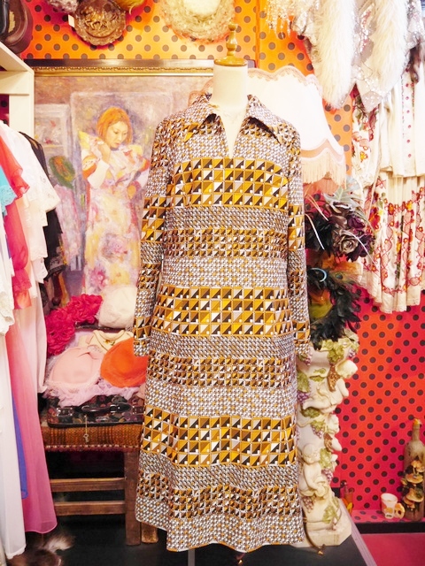 ヨーロッパ古着70s幾何学模様レトロワンピース