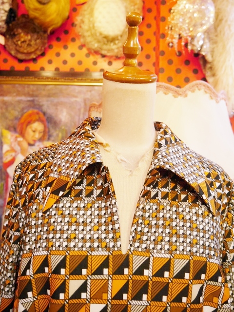 ヨーロッパ古着70sフランス製レトロポップ水玉シャツ