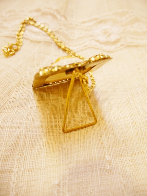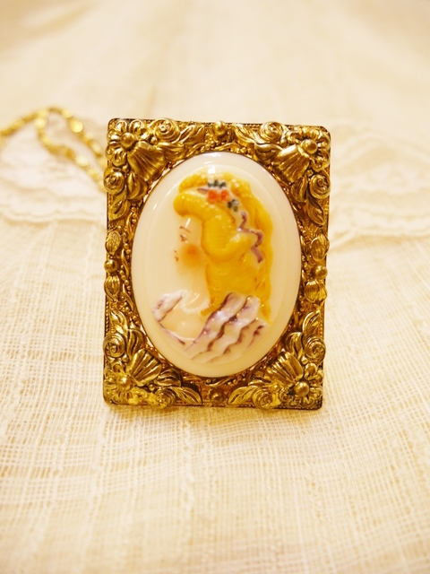 アンティークゴールド色のお花の装飾フレームに立体感がある優美なロココスタイル女性デザインが魅力的なヨーロピアンヴィンテージペンダント スタンド付きなのでお部屋のインテリアにもおススメ!