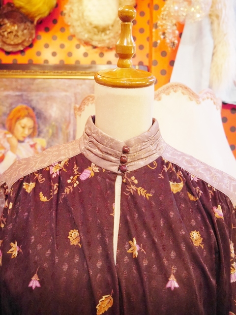 ヨーロッパ古着70sエレガントガーリー花柄ワンピース