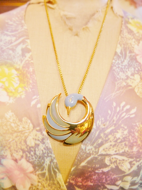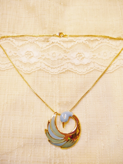 ゴールド×水色のエレガントゴージャスな白鳥デザインが素敵なベルギーで見つけたヴィンテージネックレス スタイリングを何倍にも輝かせてくれるお洒落アクセサリー