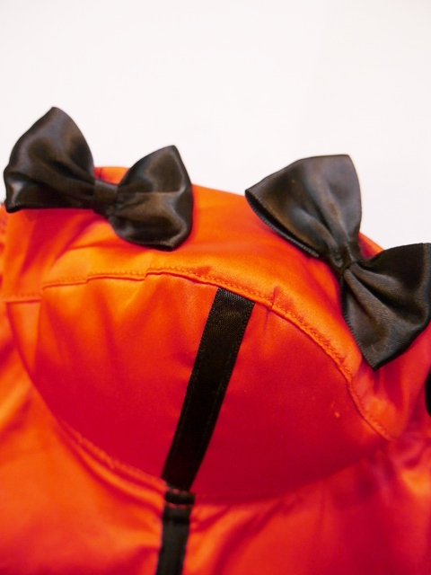 フリル、スカーフカラー、レースブラウスやワンピースなどレイヤードスタイルにおススメ!目を惹く赤色に小さな黒リボンデザインが可愛いヨーロピアンコルセット