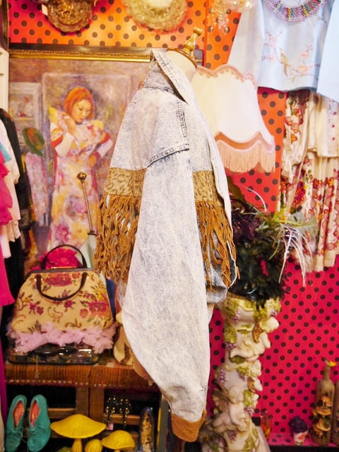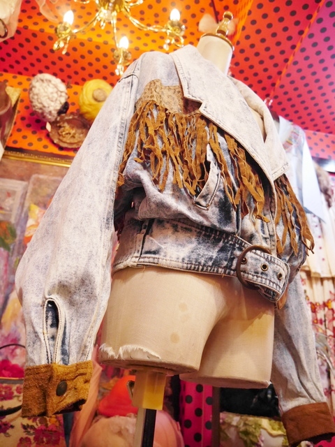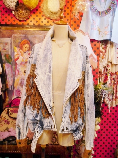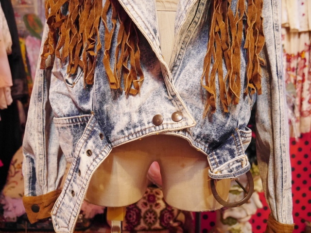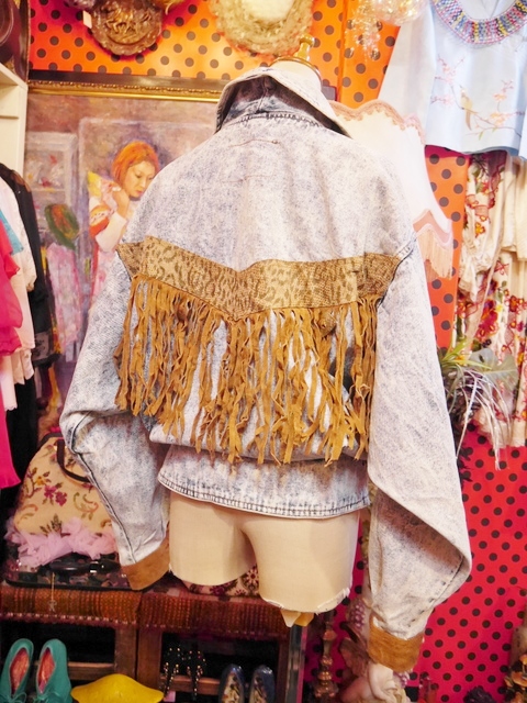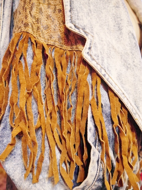 ヨーロッパ古着80sレザーフリンジデニムジャケット
