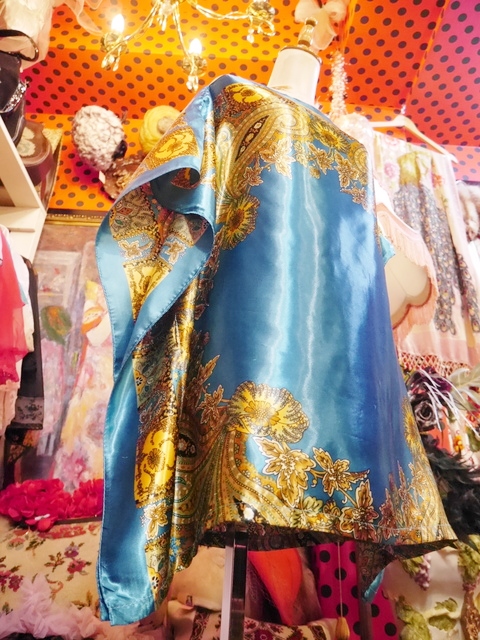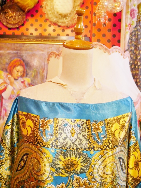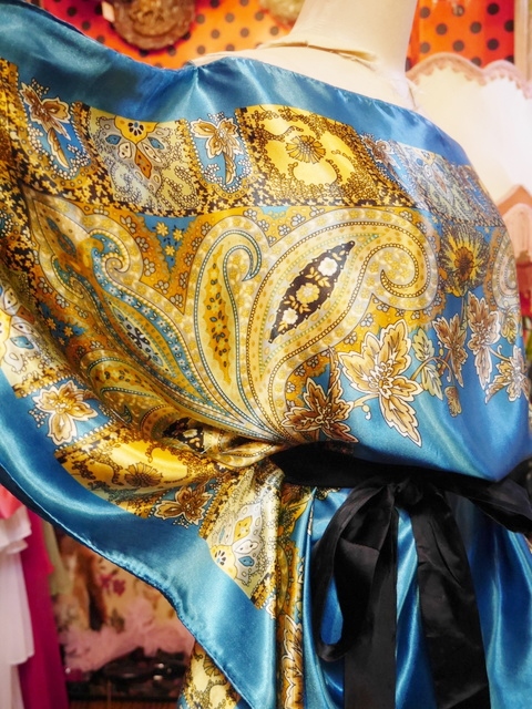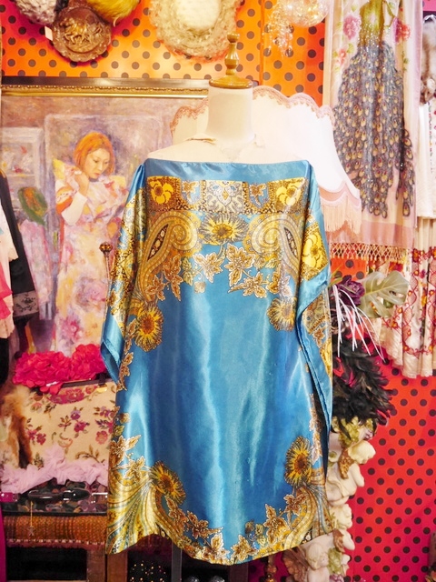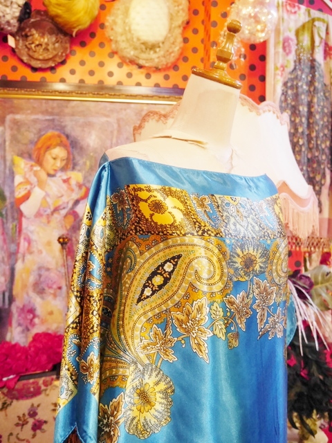 レトロサイケデリックなペイズリー×花柄プリントにドレープ感があるポンチョデザインが魅力的なヨーロピアンスカーフカットソー アクセントにウエストマークもおススメ! ★SALE★