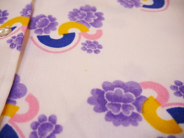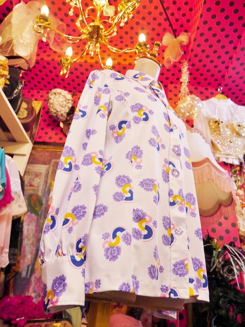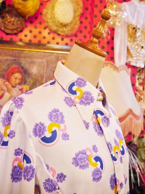 レトロモダンな花柄模様にガーリーなパフスリーブが魅力的な1960~70年代頃のフランス製ヴィンテージブラウス