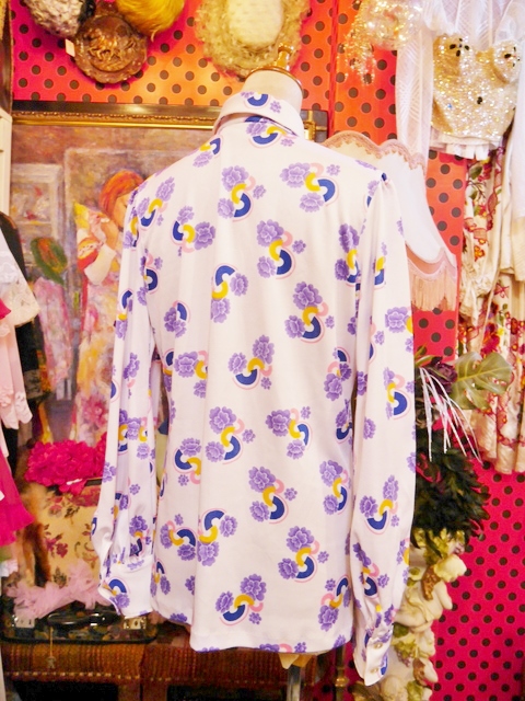 ヨーロッパ古着70sフランス製レトロポップ水玉シャツ