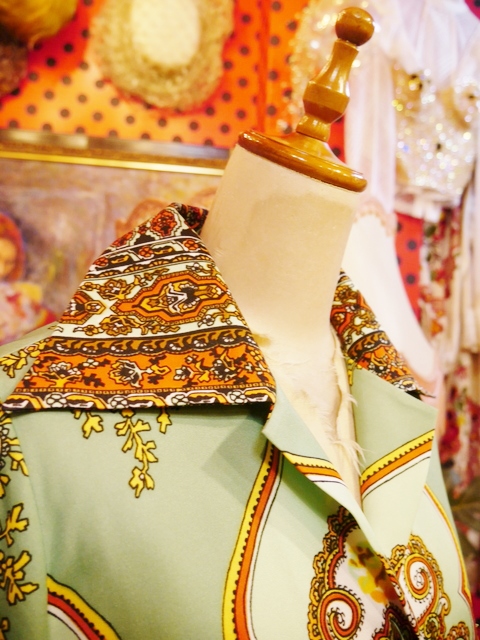 ヨーロッパ古着70sフランス製レトロポップ水玉シャツ