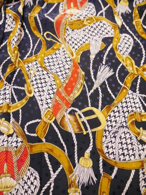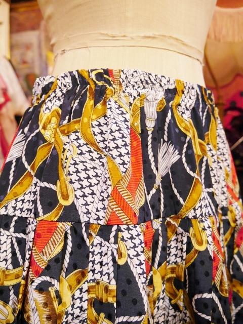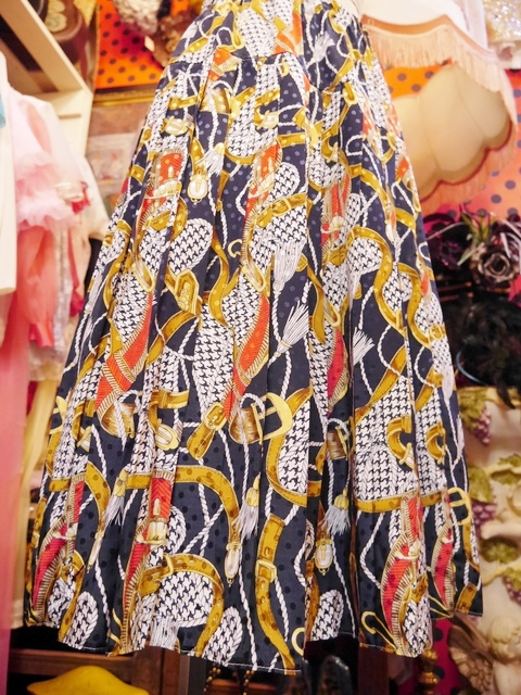 光沢があるドット生地にエレガントゴージャスなベルトやタッセルがプリントされたヨーロピアンマリンスカート