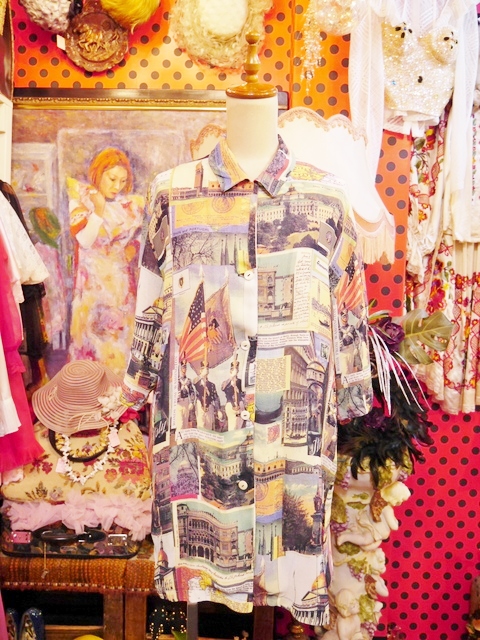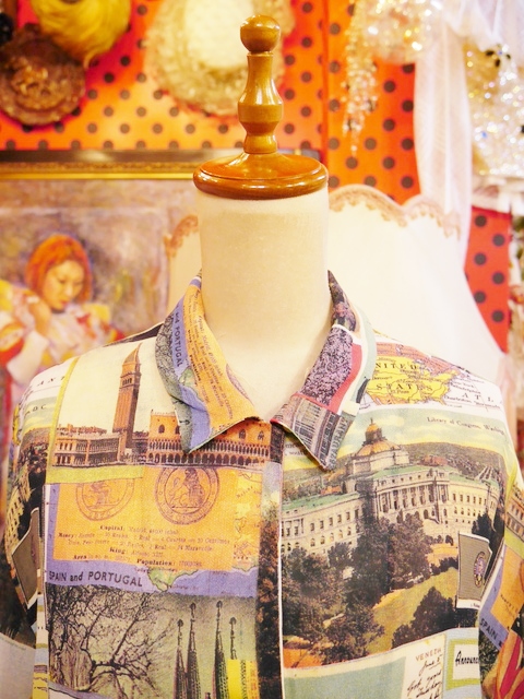 華奢な雰囲気を演出してくれるオーバーサイズに大人モードなテロ感×ワシントンやイタリアなどの絵ハガキプリントがお洒落な1980年代頃のヨーロピアンヴィンテージシャツ アクセントにウエストマークもおススメ!
