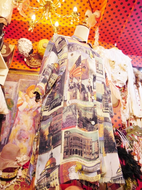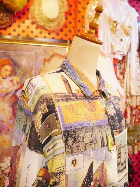 ヨーロッパ古着70sフランス製レトロポップ水玉シャツ
