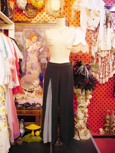 ヨーロッパ古着モノトーンデザインフレアパンツ