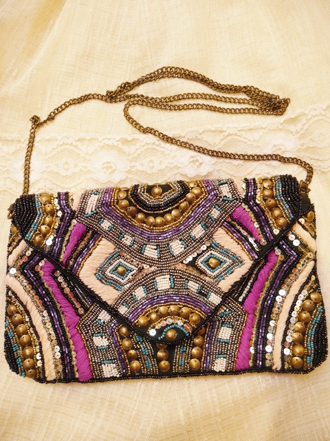 カラフルなビーズやスパンコール、毛糸刺繍がお洒落で個性的なヨーロピアンエスニックショルダーバッグ シンプルクローズのアクセントや普段のコーデにプラスするだけで華やかな印象になるお洒落アイテム!