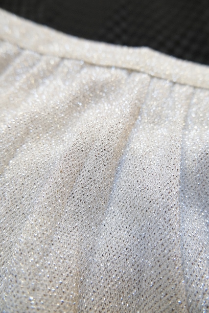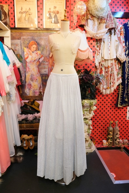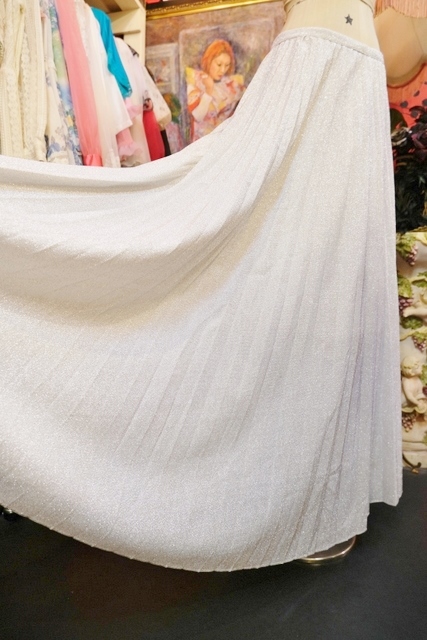 大人エレガントなプリーツフレアデザインにメタリックなシルバーラメがカッコいい1970年代頃のヴィンテージロングスカート パーティーやイベント衣装におススメ!