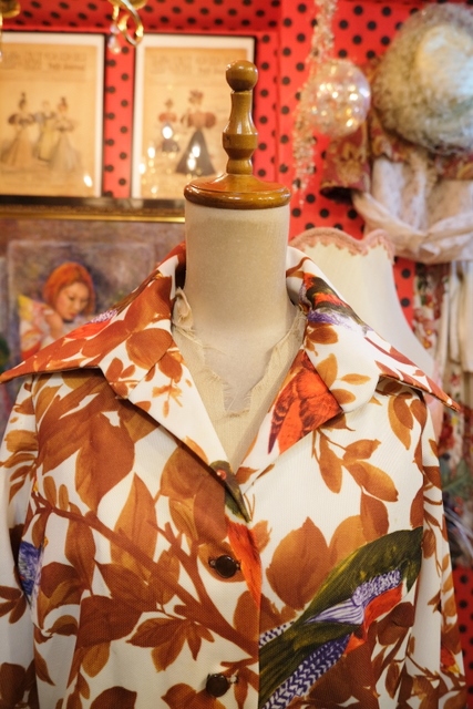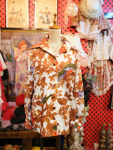 ヨーロッパ古着70sリーフ小鳥柄レトロブラウス