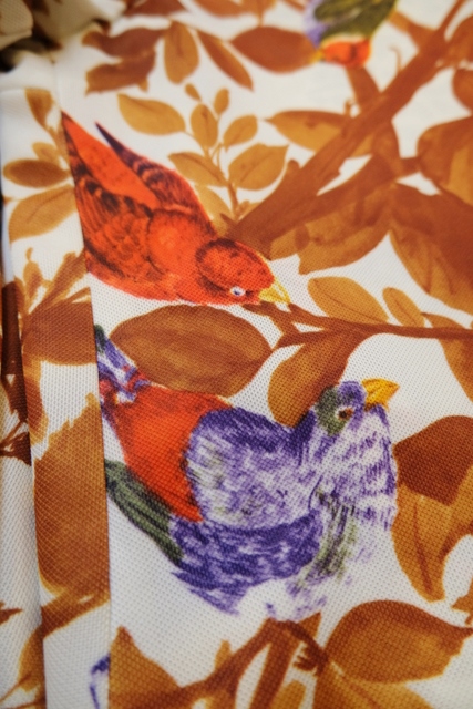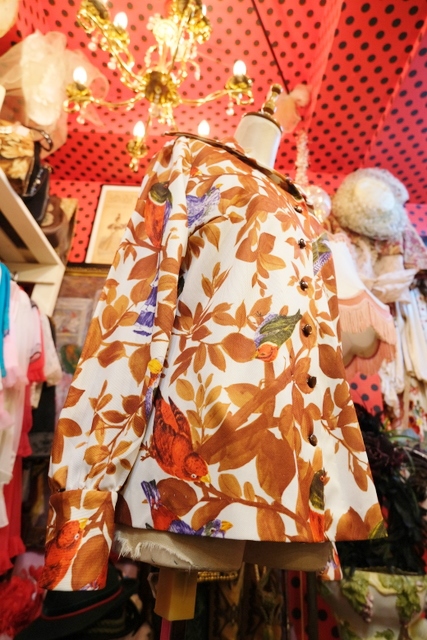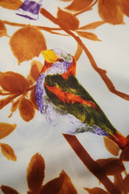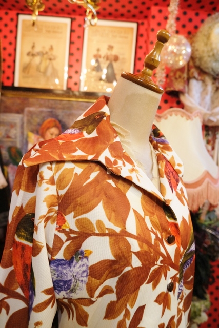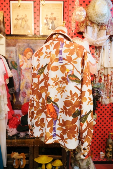 目を惹くカラフルな小鳥やリーフ柄、カフスの小鳥が魅力的!ボウタイブラウスやスカーフをプラスするだけでレトロなムードに仕上がる1970年代頃のヨーロピアンブラウス