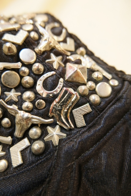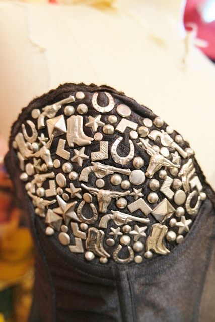 シルバーのウエスタンブーツや蹄鉄、銃などのスタッズデザインがクールでカッコいいヨーロピアンヴィンテージコルセット Tシャツやブラウスと合わせてもお洒落なアイテム!