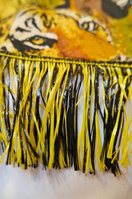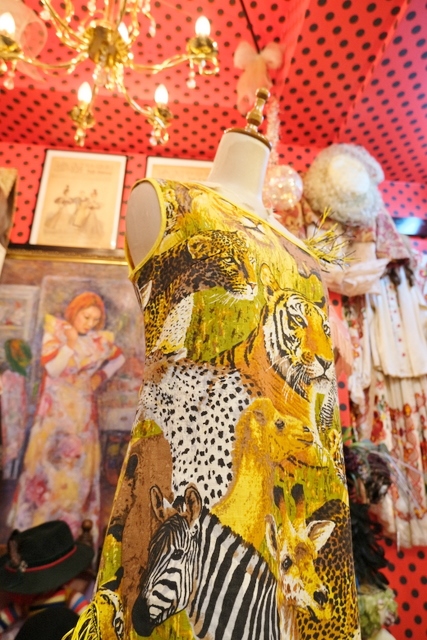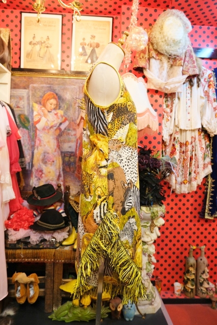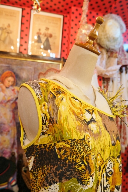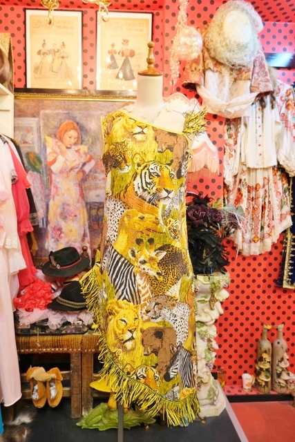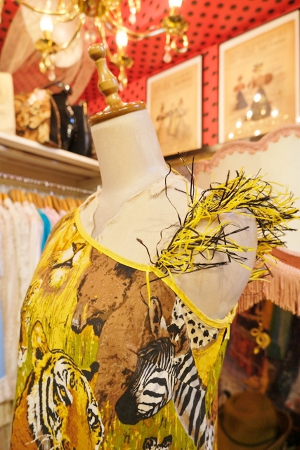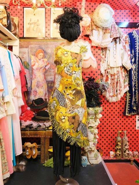 インパクトたっぷりの総アニマル柄にショルダーやアシンメトリーな裾のフリンジデザインが個性的な1970年代頃の旧西ドイツ製ヴィンテージワンピース パーティーやイベント衣装におススメ!