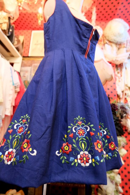 ヨーロッパ古着花柄刺繍ヴィンテージチロルワンピース