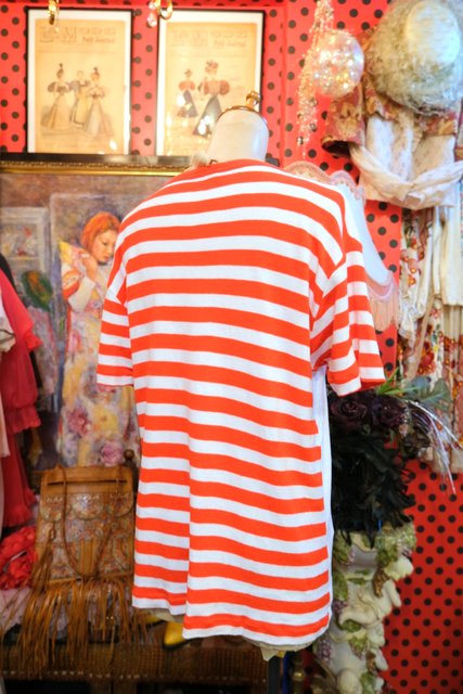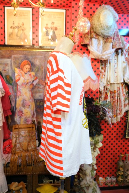 インパクトたっぷりの爆弾プリントに白×赤のボーダー切り替えデザインがお洒落で個性的な1970年代頃の旧西ドイツ製ヴィンテージTシャツ