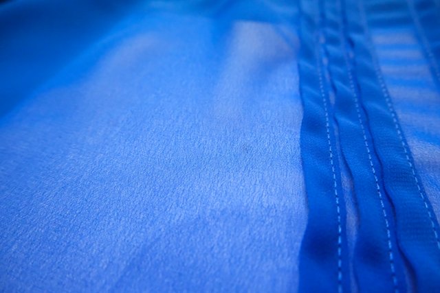 セクシーな透け感×クールな印象のブルーシフォンにフリルデザインが可愛らしいヨーロピアンノースリーブブラウス