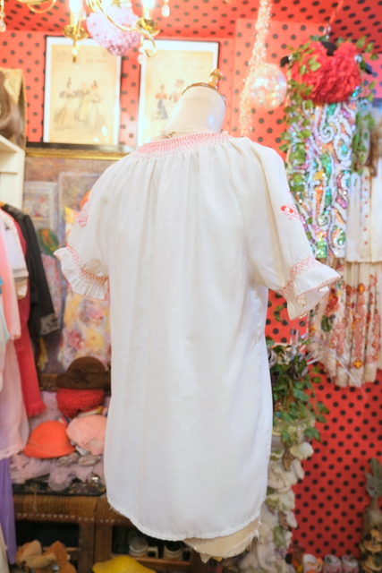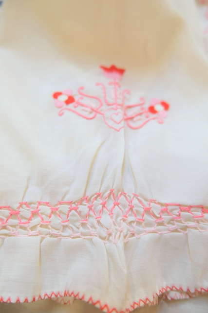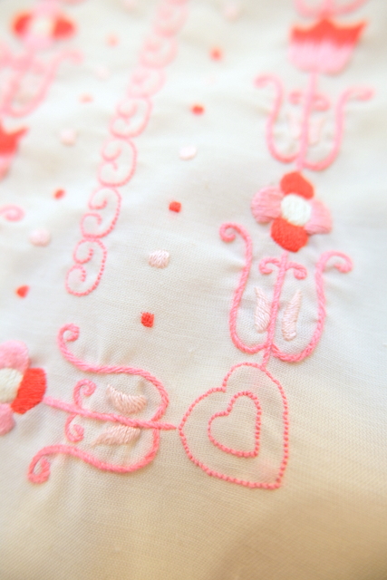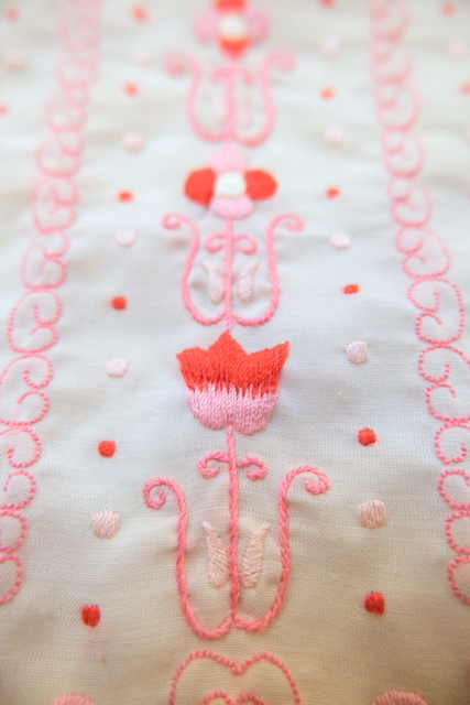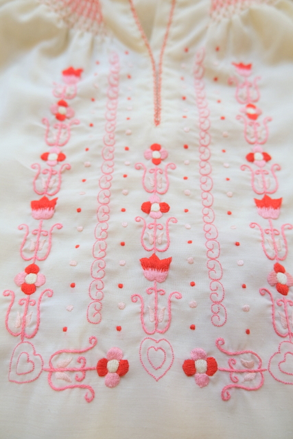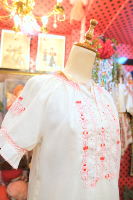 ピンクベースのグラデーションカラーステッチやチューリップやハートのエンブロイダリーデザインが可愛らしい1970年代頃のヨーロピアンヴィンテージチュニック