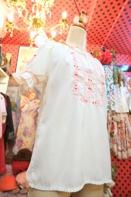 ヨーロッパ古着70sチューリップ刺繍レトロチュニック