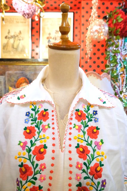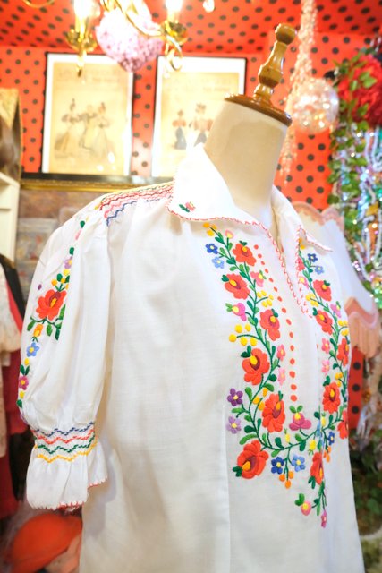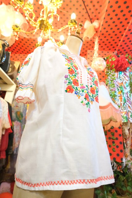 ヨーロッパ古着70s花柄刺繍ヴィンテージチュニック