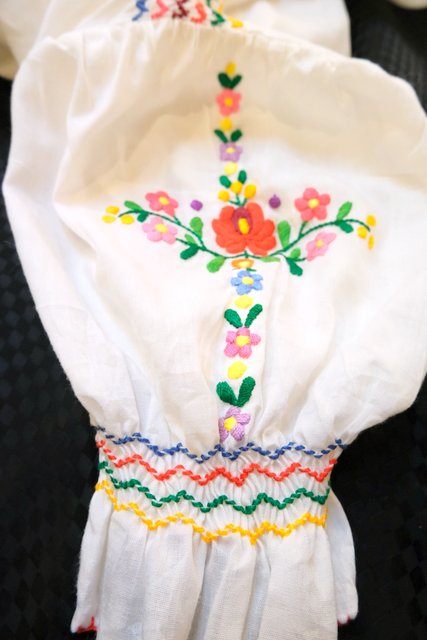 色鮮やかでフォークロアなフラワーエンブロイダリーに、華やかなシャーリングステッチが魅力的な1970年代頃のヨーロピアンヴィンテージチュニックブラウス