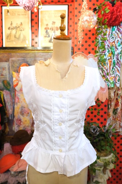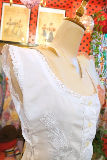 ヨーロッパ古着エレガント花柄刺繍ノースリーブトップス