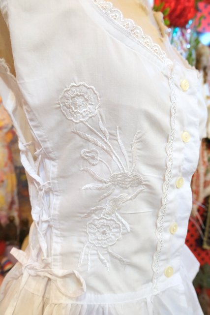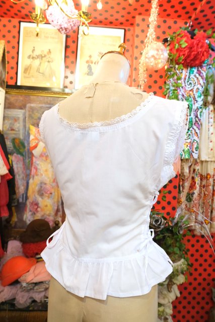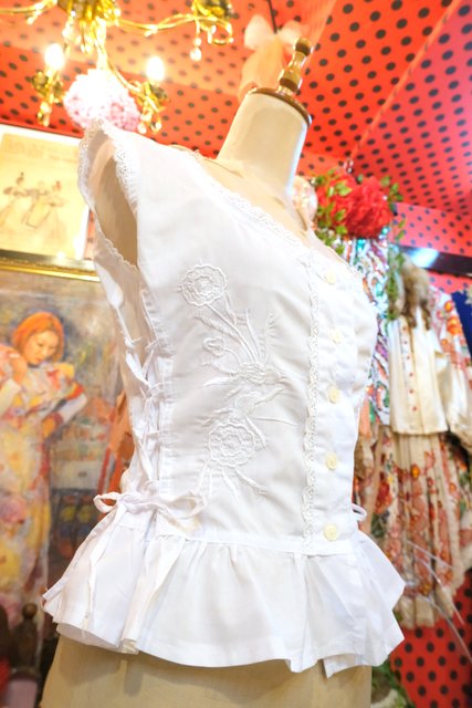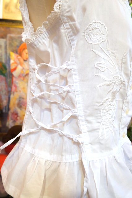 エレガントな花柄刺繍に両サイドのレースアップデザインが魅力的なトルコ製ノースリーブトップス レイヤードスタイルが楽しくなるお洒落アイテム!