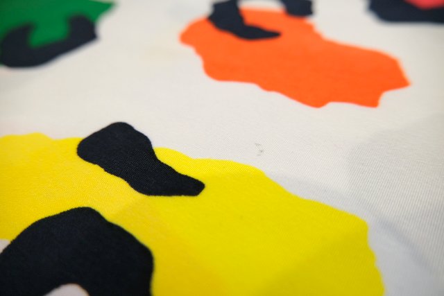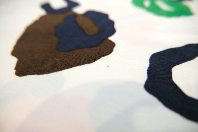 カラフルな筋斗雲柄と雷文模様の切り替えデザインに首周りのブレ…