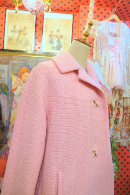 ガーリーなピンク色にレトロなボタン×コーデにラフな抜け感をプラスできるラグランスリーブが魅力的な1970年代頃のUSA製ヴィンテージコート
