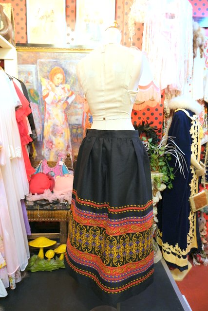 ふんわり広がるウエストタックデザインにエレガントでカラフルなサイケデリック模様が魅力的な1970年代頃のヨーロピアンヴィンテージスカート ★SALE★
