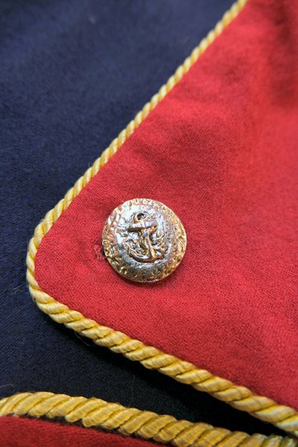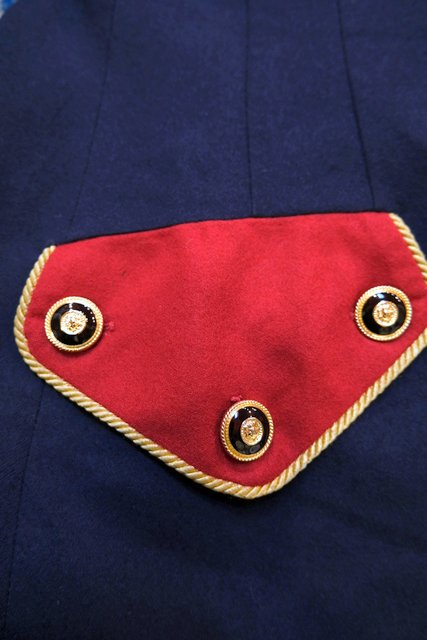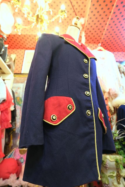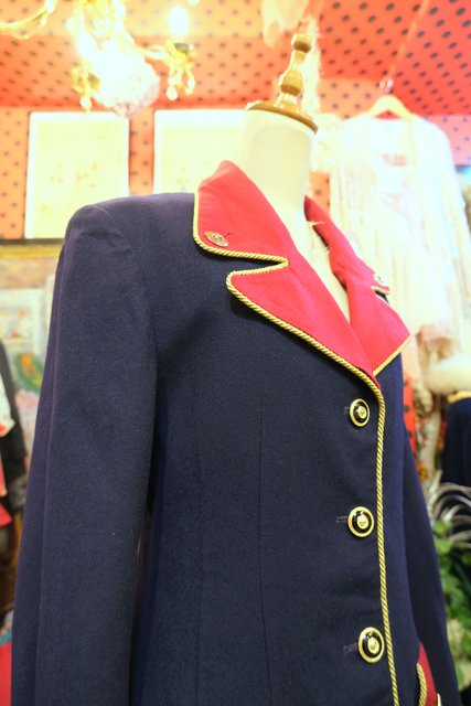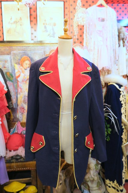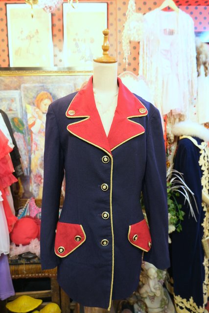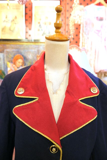 タイトなシルエットに赤×ネイビーの切り替えデザインやゴールドテープ、エレガントなボタンがカッコいいUSA製luciano tempestaジャケット